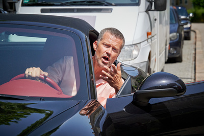 Weil ich exzentrische Figuren, in diesem Fall den pöbelnde Sportwagenfahrer, der so richtig die Sau rauslässt, immer gerne spiele. Und weil wir, dadurch, dass es sich um eine Instant Fiction-Serie handelt, auf ein aktuell hochbrisantes Thema sehr schnell eingehen. Normalerweise dauert es bei der Fiction ein Jahr oder mehr, bis das Gedrehte auch wirklich im TV läuft – hier sind es gerade mal ein paar Wochen.