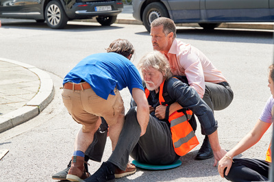 Es war gar nicht mal so sehr die Rolle, die mir geholfen hat, mich in die Lage der Klimaaktivistinnen und Klimaaktivisten hineinzuversetzen, sondern vielmehr die Konfrontation mit den einzelnen im Stau stehenden Menschen. Dieser Zwiespalt zwischen der Notwendigkeit, die Protestaktion durchzuziehen und dem Mitgefühl mit den Autofahrerinnen und Autofahrern, wird in der Serie sehr gut transportiert.