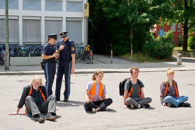 Finn ist zum ersten Mal bei einer Aktion seiner Klimaprotestgruppe dabei, will sich seine Aufregung aber nicht anmerken lassen. Schon gar nicht vor Mitaktivistin Lena. Als die Hände der Protestierenden schließlich fest auf der Straße kleben, staut sich der Verkehr. Sehr zur Verzweiflung von Paketfahrer Lew. Er ist noch in der Probezeit und darf seinen Job auf keinen Fall verlieren. Immer mehr Menschen versammeln sich in kurzer Zeit an der Kreuzung und lassen ihrem Unmut freien Lauf.