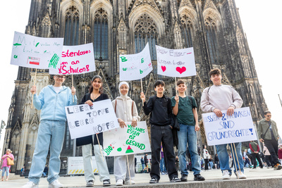 Dass auch Mensa besser geht, erlebt Lege beim Besuch der Herbert-Grillo-Gesamtschule in Duisburg-Marxloh denn hier setzt man beim Thema Schulverpflegung ganz neue Maßstäbe. Doch es wird klar: Eine echte Verbesserung beim Schulessen braucht politischen Rückhalt. Die positiven Eindrücke motivieren auch die Kölner Schüler, selbst aktiv zu werden. Sie planen eine Unterschriftenaktion für kostenloses Schulessen und wollen mit selbst gestalteten Protestplakaten auf die Straße gehen, um auf ihre Forderung aufmerksam zu machen.