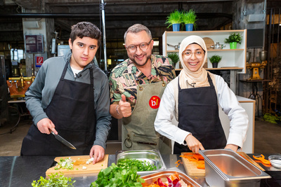 Ab in die Werkstatt! Die Schüler der Wilhelm-Lehmbruck-Grundschule Dorsten kochen mit Sebastian Lege eine leckere Variante vom Kantinenessen: Hähnchen-Geschnetzeltes mit Smashed Potatoes.