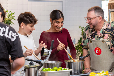 Sebastian Lege startet eine umfassende Geschmacksbildung: Er testet mit den Kindern, was sie eigentlich kennen und mögen und fragt nach den Wünschen der Schule: Wo soll es hingehen? Gibt es Offenheit für einen neuen Caterer? Vielleicht hilft ein Caterer-Casting, um bessere Anbieter zu testen?