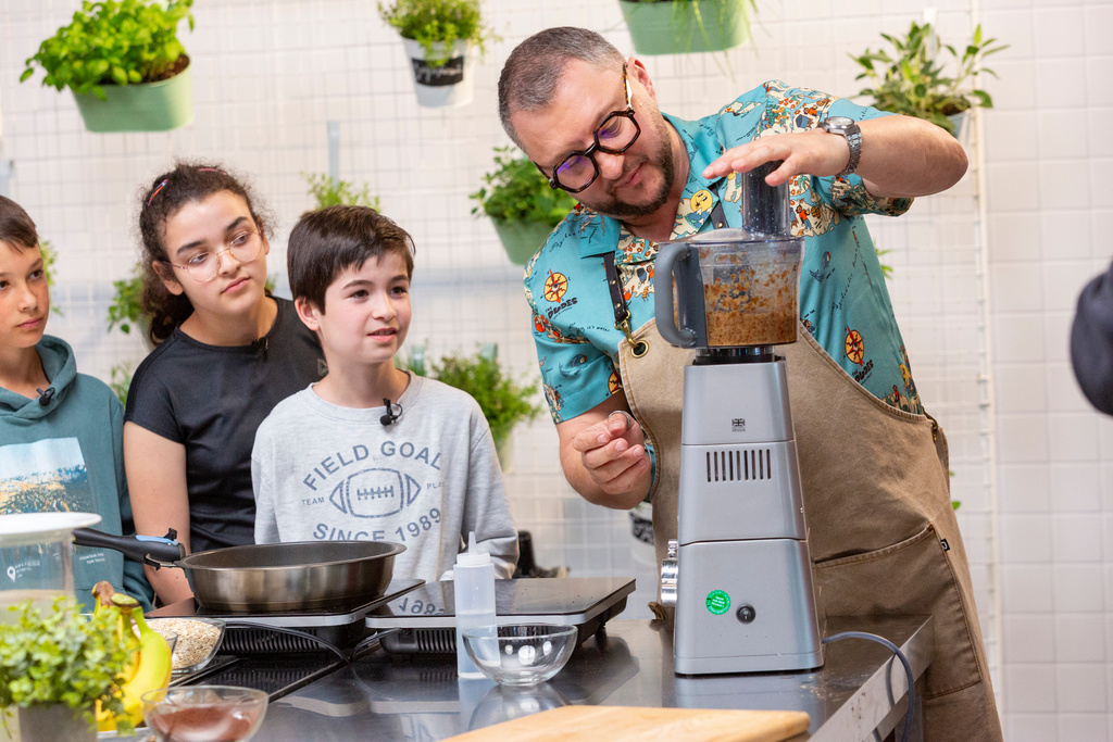 In seiner Werkstatt zeigt er: Das Schulessen geht besser und zwar einfacher, gesünder, günstiger und mit weniger Zutaten. Gemeinsam mit den Kindern und den Hauswirtschaftskräften wird geschnibbelt, gekocht, probiert und gestaunt. Denn gutes Essen muss nicht kompliziert sein.
