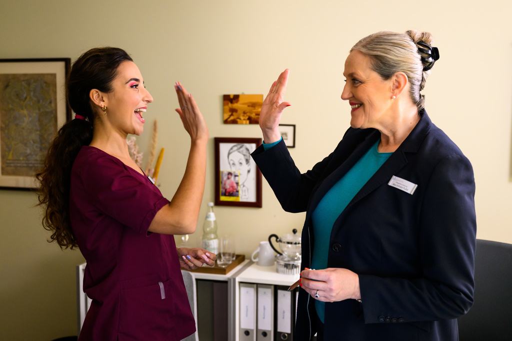 Ich habe im Vorfeld ein paar medizinische Handgriffe von unserer Fachberatung lernen dürfen. Es ist ein riesiges Glück, dass unsere Spezialistin uns tagtäglich am Set unterstützt und die szenische Arbeit professionell betreut.