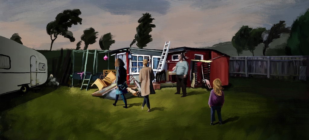 Dort wohnt der Haupttäter Andreas V. in einem Campingwagen, umbaut mit Holzbaracken. Auf der Parzelle türmt sich Gerümpel, im Inneren stapeln sich Müll, Schrott und dreckige Wäsche. An den Wänden hängen zahlreiche Bilder – gemalt von Kindern.