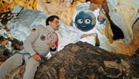 Nachdem auf dem Papier viele, viele verschiedene Entwürfe der Weltkugel entstanden waren, haben wir uns auf ein Design geeinigt und die Erde in einem 3D-Programm nachgebaut. Dann hat ein Sprecher die Texte der Welt eingesprochen und eine Schauspielerin im sogenannten Motion-Capture-Anzug Mimik und Gestik für die einzelnen Szenen nachgespielt. Mithilfe des Anzugs werden alle Bewegungen von Körper, Armen, Augen und Lippen per Computer aufgezeichnet und in Echtzeit auf die 3D-Weltkugel übertragen. Wenn die Schauspielerin also lächelt, lächelt auch die Welt, wenn die Schauspielerin den linken Arm hebt, hebt auch die Weltkugel den linken Arm. Schließlich wurden diese animierten Welt-Sequenzen mit den von Uli gedrehten Bildern kombiniert, der vor Ort die Dialoge eigentlich mit der Regie-Assistentin geführt hat. In den fertig komponierten Szenen entsteht im Film dann der Eindruck, dass Uli mit einer lebendigen Weltkugel spricht.