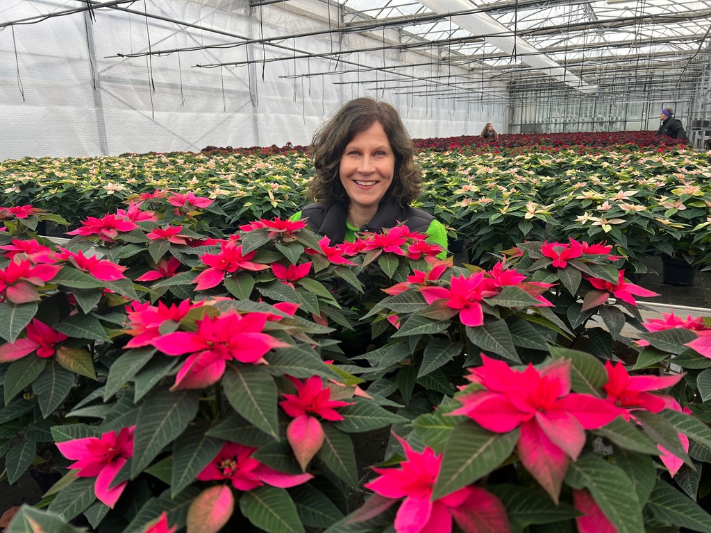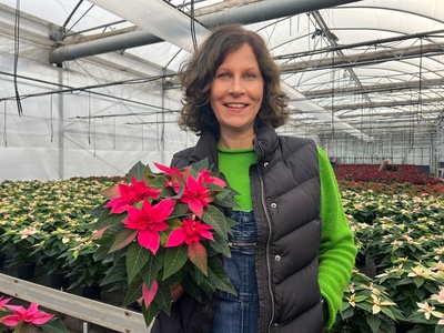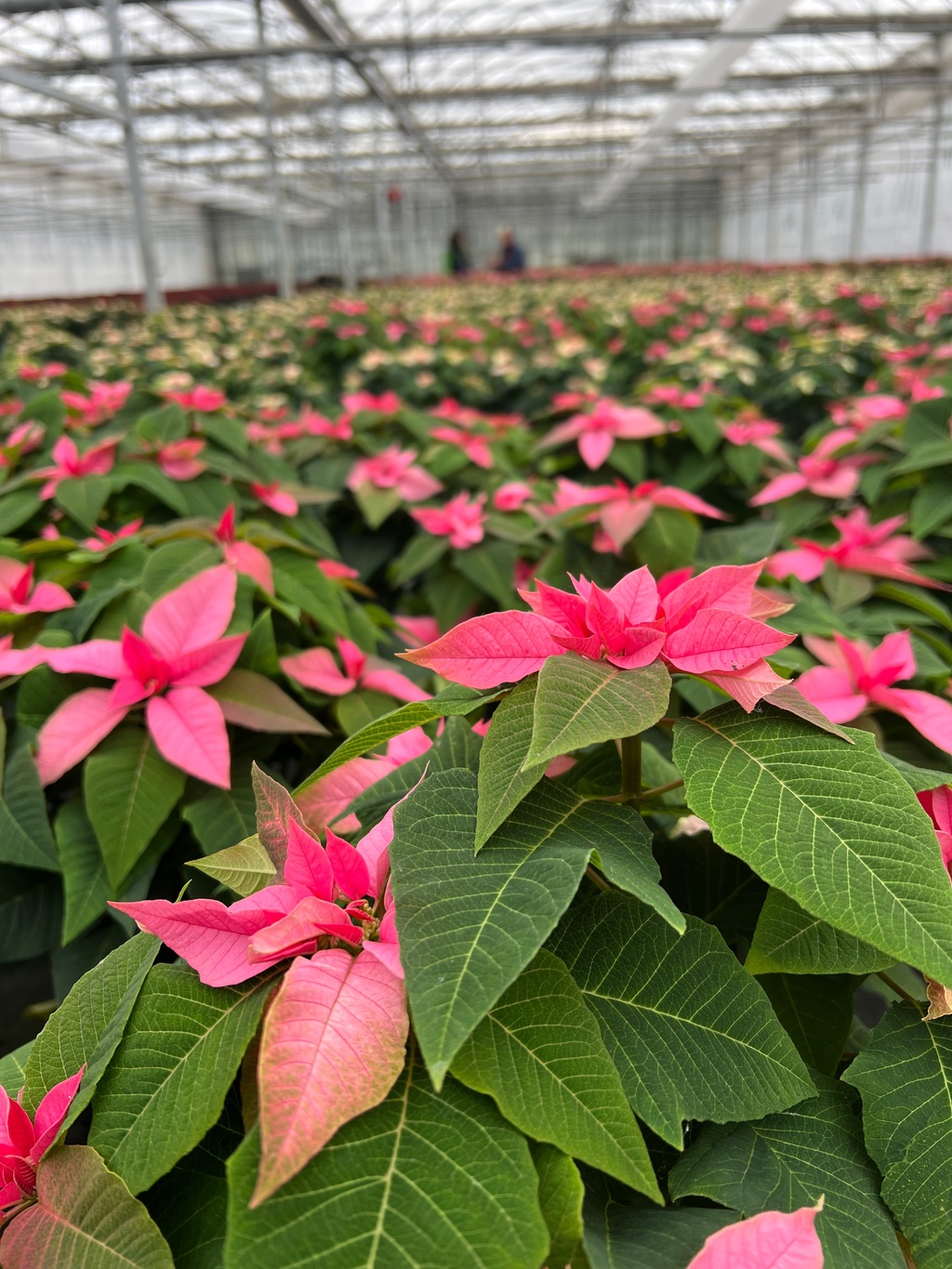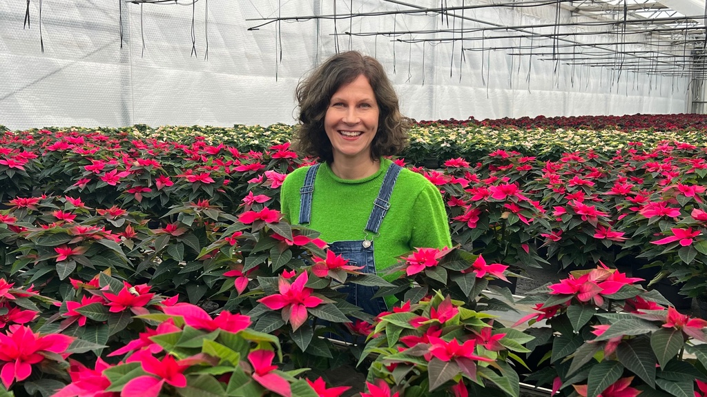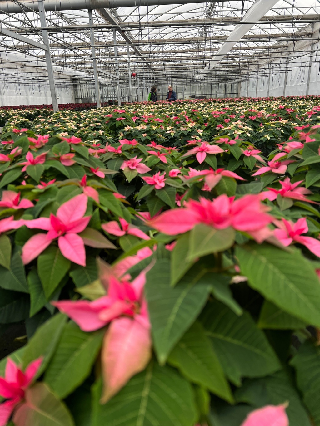 Am Ende ihrer Reise blickt Sabine Platz über Flächen voller Weihnachtssterne in allen Farben – vom klassischen Rot bis zu Rosa, Weiß und Pink. Die prachtvollen Farbtöne sind keine Blüten, sondern verfärbte Blätter, die entstehen, wenn die Pflanze über Wochen hinweg täglich mindestens zwölf Stunden im Dunkeln steht.