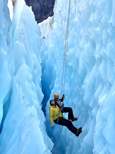 Mitten im Eis der Südinsel: Wildtierärztin Hannah Emde und Forscherin Heather Purdie erkunden den Fox-Gletscher. Jede Schicht des Eises erzählt eine Geschichte –über Neuseelands wilde Vergangenheit und seine verletzliche Zukunft.