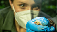 Hannah Emde untersucht weiße Fledermäuse mit gelben Nasen und Ohren. Die ungewöhnlichen Farben verraten viel über das ökologische Netzwerk des Regenwaldes.