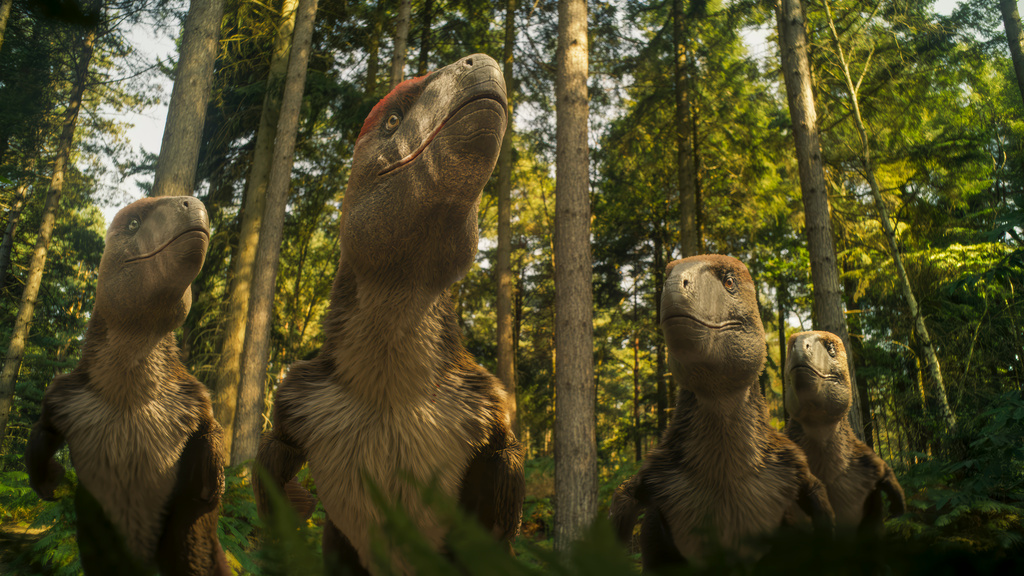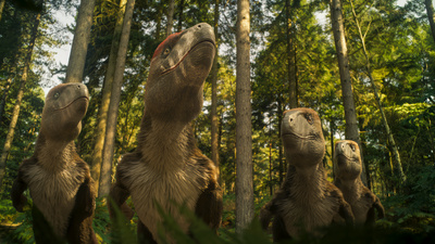 Eine der wichtigsten Erkenntnisse, die in jüngster Zeit in Bezug auf Dinosaurier gewonnen wurden, ist die Tatsache, dass viele Arten wahrscheinlich Federn hatten – in der Reihe werden auch ein "wuscheliger" Albertosaurus und ein voll befiederter Utah-Raptor gezeigt. Es wird immer deutlicher, dass Dinosaurier dynamische, komplexe Tiere waren: Sie hatten offenbar ausgefeilte Raubtiertaktiken, ein kompliziertes Balzverhalten und interessante Kommunikationsmethoden.