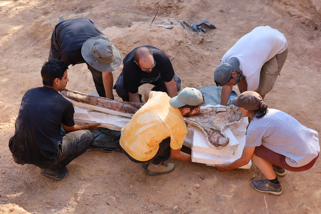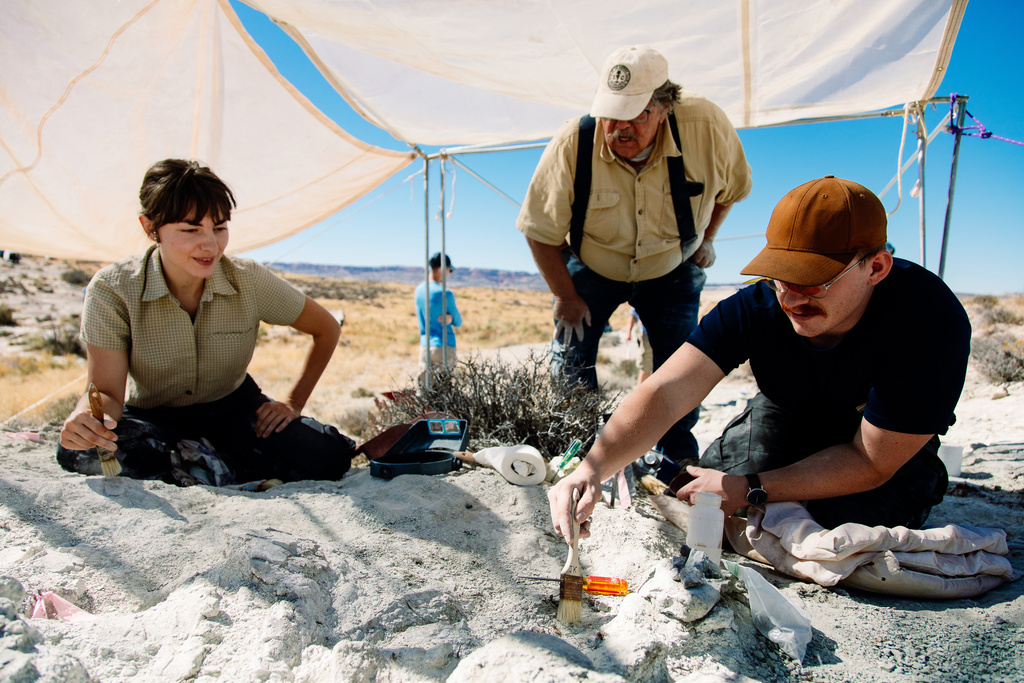 Das hängt von verschiedenen Faktoren ab, wie zum Beispiel von der Art des Gesteins, der Größe des Fossils und der Umgebung. Manchmal wird ein Fossil auf natürliche Weise erodiert und liegt auf dem Boden – bereit, eingesammelt zu werden. In anderen Fällen kann es in besonders hartem Gestein und unter schwierigen Bedingungen Jahre dauern, bis die Fossilien ausgegraben und anschließend gereinigt sind. Der in Folge 5 gezeigte Utahraptor-Block ist ein solches Beispiel: Zehn Jahre nach seiner Ausgrabung und 3.500 Stunden Präparationsarbeit später wird er noch immer bearbeitet.