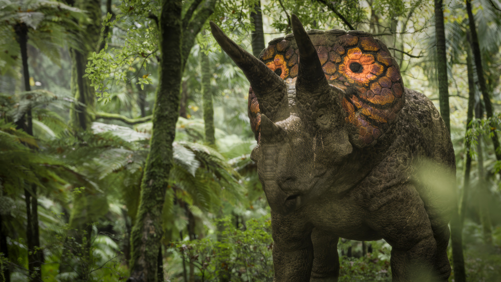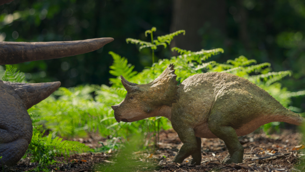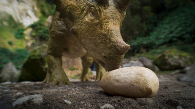 Fundstelle und Lebensraum: Diese Folge spielt in der berühmten Hell-Creek-Formation in Montana, USA, einer der am besten untersuchten Dinosaurierfossilienfundstellen der Welt. Dieser Ort ist die Heimat einiger der bekanntesten Dinosaurier, darunter Triceratops, Tyrannosaurus, Edmontosaurus und Ankylosaurus. Triceratops lebte in einer warmen, üppigen, subtropischen Umgebung, mit hoch aufragenden Bäumen und einer Fülle von Flüssen und Seen. Um eine Umgebung zu finden, die dem kreidezeitlichen Montana am ehesten ähnelt, entschied sich das Filmteam für Sao Miguel auf den Azoren: Viele Pflanzen an diesen Orten stimmten mit fossilen Pflanzen aus Hell Creek überein wie Fächerpalmen, Schachtelhalme und Ingwerpflanzen.