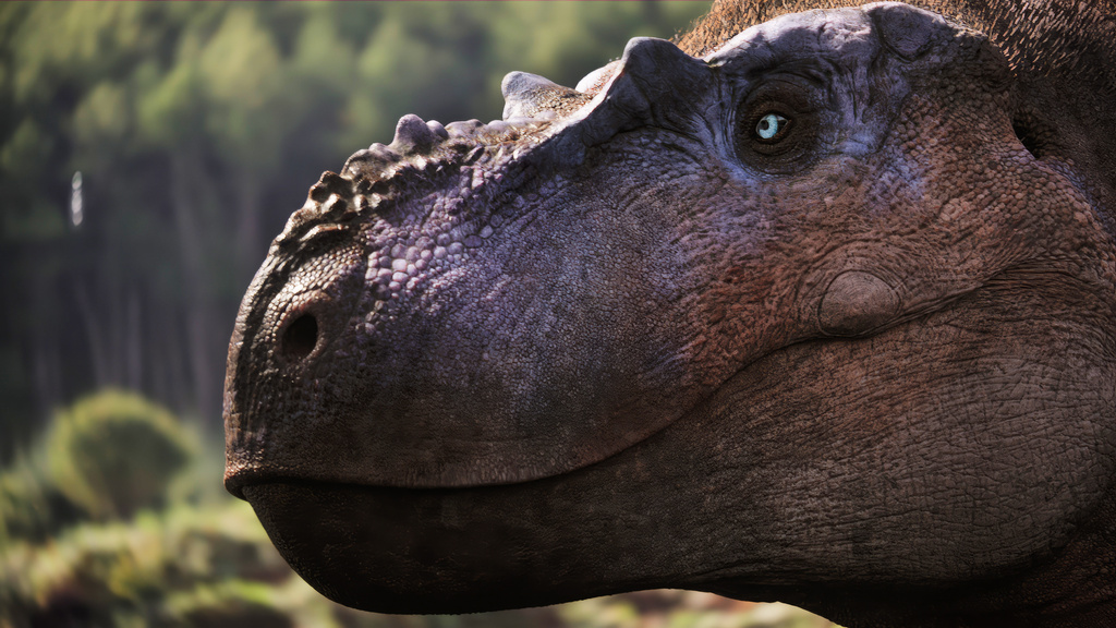 Steckbrief: Der Pachyrhinosaurer war ein massiger Dinosaurier mit knöcherner Stirnplatte und verwandt mit dem berühmten Triceratops. Der hornartige, individuell geformte Kragen machte jedes Tier einzigartig und war wie eine Art biologischer Fingerabdruck. Pachyrhinosaurier waren mit Sicherheit Herdentiere, die in kleinen Familiengruppen zusammenlebten und – ähnlich den modernen Karibus – für ihre jährlichen Wanderungen Superherden bildeten. Da alle gefundenen Jungtiere ein ähnliches Alter haben, ist es wahrscheinlich, dass die Herde mit dem Nachwuchs nach Norden zu einem Brutplatz wanderte, um dort neue Eier zu legen.