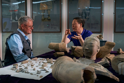 Kann man die Chinesische Mauer tatsächlich aus dem All sehen? Auch dieser Frage geht Christopher Clark nach. In Hangzhou entdeckt er die Poesie des Westsees und die Kunst des Teeanbaus, während ihn in Xi'an die weltberühmte Terrakotta-Armee in die Geschichte des alten Kaiserreichs eintauchen lässt: Was erzählt die riesige Armee der 8.000 Tonkrieger heute noch? Aus kleinsten Bruchstücken bauen Experten mit Hilfe von KI zerstörte Figuren heute wieder zusammen – und ermöglichen eine Zeitreise ins chinesische Reich vor 2.200 Jahren. In der Metropole Xi'an taucht Christopher Clark auch in die Genüsse der chinesischen Küche ein und lässt sich von der traditionellen Medizin des Landes faszinieren. Auch ein Besuch der bunten Regenbogenberge des Zhangye-Danxia-Geoparks darf nicht fehlen.