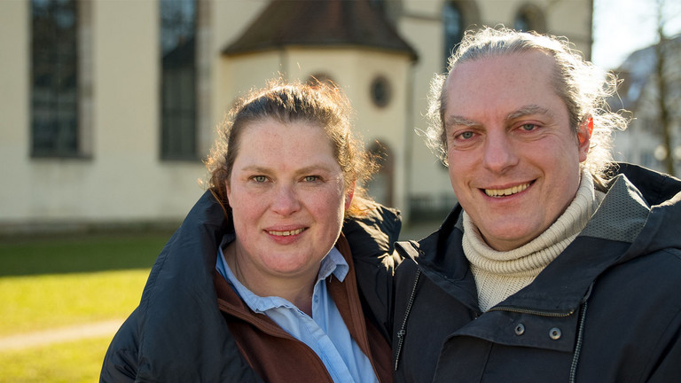 Rüdiger (r.) und Frau Alexandra: Er rechnet 87 hoch 12 in Sekunden und sie hält ihm den Rücken frei.