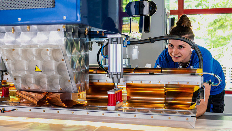 Eine von Annies Tätigkeiten im Betrieb: hochfrequenzschweißen von technischen Textilien. Copyright: ZDF/Reinhard Bettauer