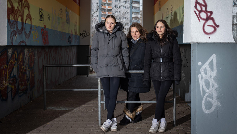 Luisa (16, r.), Angie (18) und Ihre Mutter Silvana (37) träumen von einer Zukunft ohne Geldsorgen.