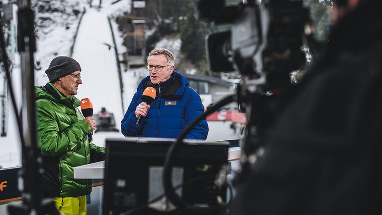 Experte Toni Innauer und Moderator Norbert König berichten vom Auftakt und Finale der 71. Vierschanzentournee. Copyright: ZDF/Jürgen Feichter