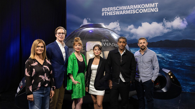 Anlässlich des "Welttags der Ozeane" am 8. Juni 2022 präsentierte das ZDF für die internationale ZDF-Koproduktion "Der Schwarm" erste Einblicke in die achtteilige Thriller-Serie, basierend auf Frank Schätzings internationalem Bestseller. Am Dienstag, 7. Juni 2022, gaben Showrunner und Executive Producer Frank Doelger, Regisseurin Barbara Eder sowie Fachberaterin Prof. Dr. Antje Boetius in Berlin einen "First Look" in ihre Arbeit hinter der Kamera und die kreativen Prozesse, die zur Entstehung dieser aufwendigen Serie geführt haben. Production Designer Julian R. Wagner und Visual Effects Supervisor Jan Stoltz erläuterten die Prozesse. Erste Ausschnitte der internationalen ZDF-Bestseller-Verfilmung zeigte zudem ein Trailer. Anwesend waren neben den Koproduktions-Partnern und geladenen Gästen die Schauspielerinnen und Schauspieler Leonie Benesch ("Babylon Berlin"), Rosabell Laurenti Sellers ("Game of Thrones"), Alexander Karim ("The Lawyer") und Klaas Heufer-Umlauf aus dem hochkarätig besetzten, internationalen Cast. Zurzeit befindet sich die Serie noch in der Postproduktion. Die Ausstrahlung im ZDF ist für das Frühjahr 2023 geplant.