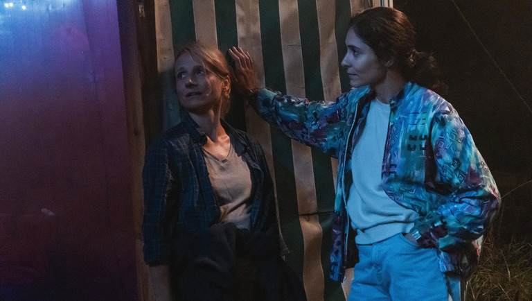v.l.n.r Kerstin (Christina Große) und Alima (Pegah Ferydoni) halten zusammen im Streit mit Kerstins Bruder Thomas.