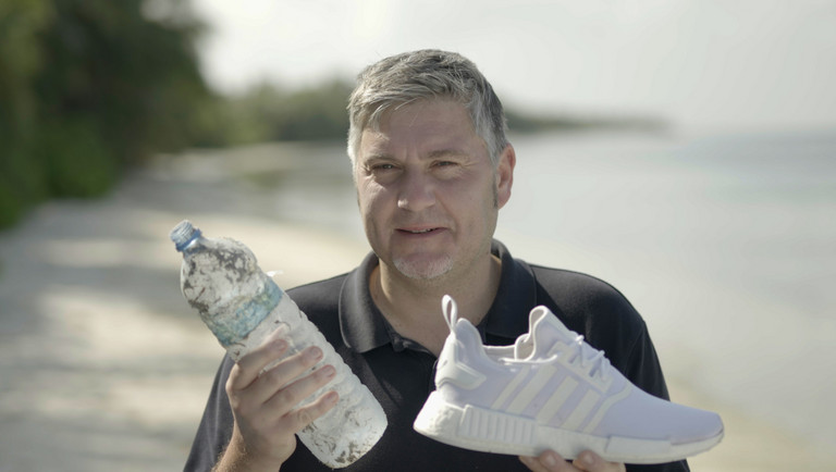"Greenwashed? Der Schuh aus Meeresplastik" mit ZDF-Umweltreporter Andreas Stamm Foto: ZDF und Henrik Eichmann.