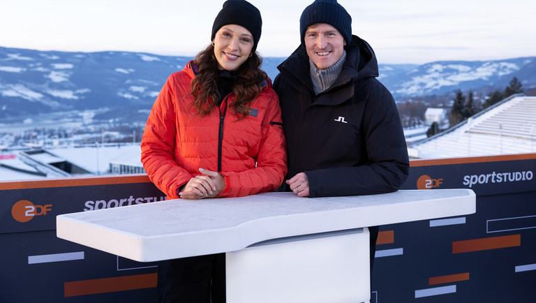 Lena Kesting und Severin Freund begrüßen das ZDF-Publikum zur Vierschanzentournee live aus Oberstdorf.