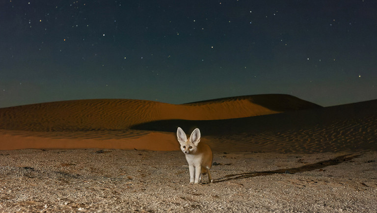 Gerade einmal so groß wie ein Chihuahua ist der Wüstenfuchs. Mit seinen leistungsfähigen Lauschern kann er sogar Tiere orten, die sich im Sand verstecken.