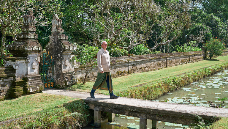 Christopher Clark auf dem Weg in den Taman Ayun Tempel auf Bali.
