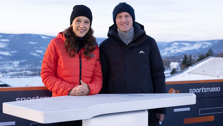 Moderatorin Lena Kesting und Experte Severin Freund präsentieren erstmals die Vierschanzentournee im ZDF.