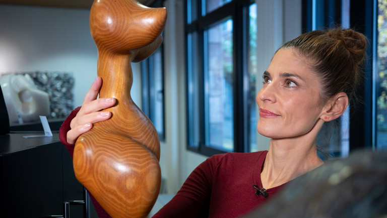 "aspekte"-Moderatorin Katty Salié leiht sich in der Dortmunder Artothek Kunst aus.