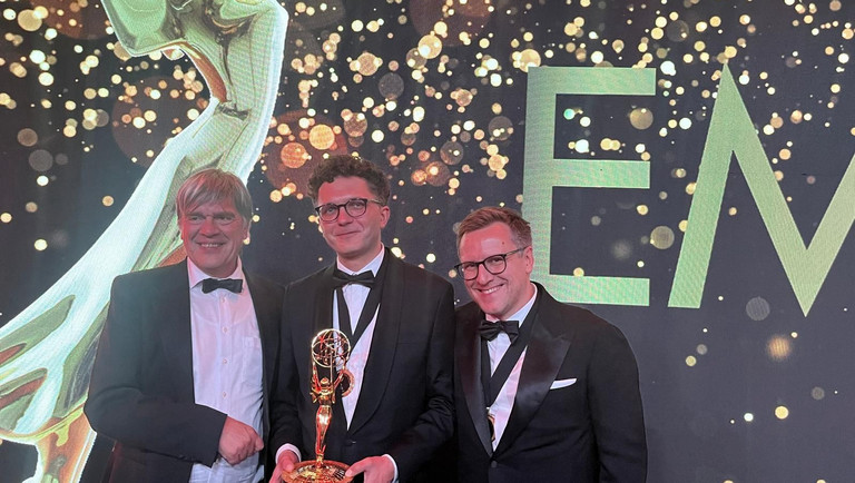 Emmy Award für die ZDF/ARTE-Koproduktion "Pianoforte": Wolfgang Bergmann (ARTE-Koordinator im ZDF & Geschäftsführer ARTE Deutschland), Jakub Piątek (Regie und Autor), Maciej Kubicki (Produzent) Foto: Privat