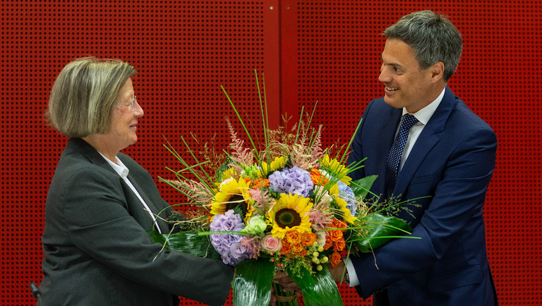 Norbert Himmler beglückwünscht Marlehn Thieme zur Wahl zur Vorsitzenden des ZDF-Fernsehrates