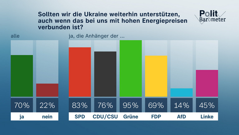 Klare Mehrheit für Unterstützung der Ukraine trotz hoher Energiepreise / Ansehen fast aller Politiker deutlich verschlechtert