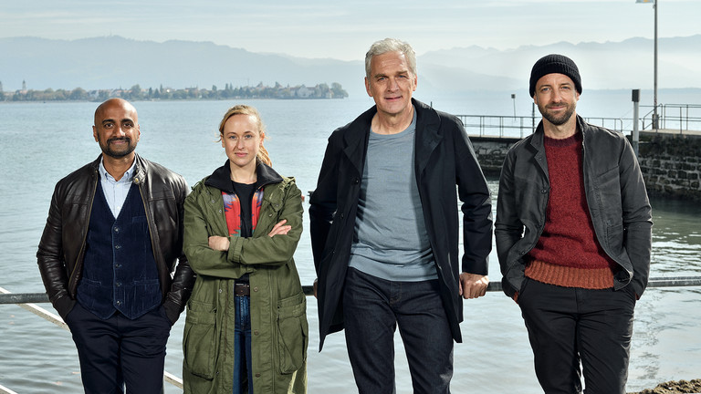 Von links: Dr. Herbert Hämmerle (Murali Perumal), Annika Wagner (Nurit Hirschfeld), Robert Anders (Walter Sittler), Martin Keller (Dominik Maringer)