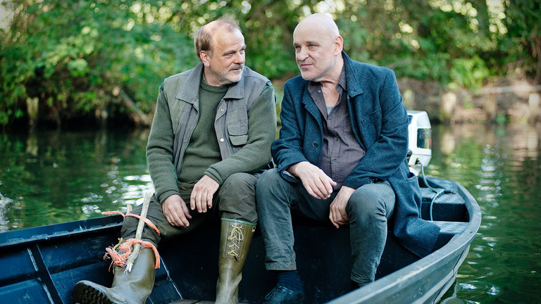 Bernhard Schütz in der Rolle des Jägers Helmut Drilling und Christian Redl als Kriminalrat Thorsten Krüger