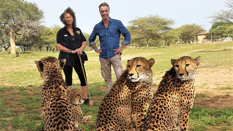 Hannes Jaenicke mit Dr. Laurie Marker (Fachfrau für Geparden)