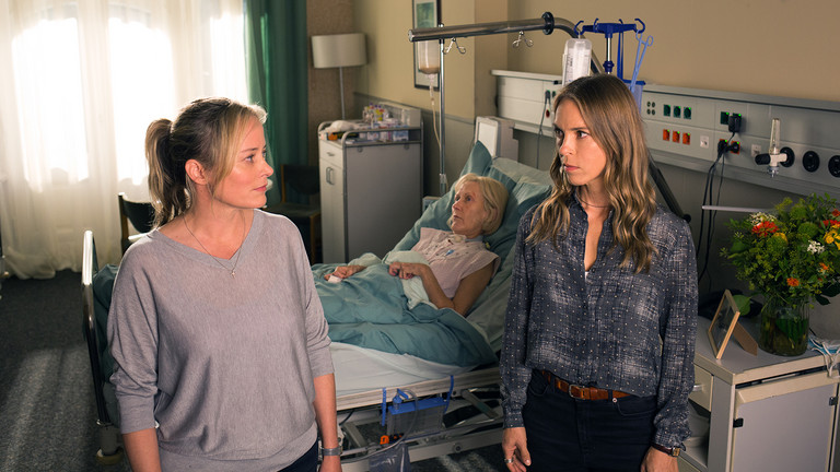 "Bring mich nach Haus - Drehstart": Die beiden Schwestern Sandra (Anneke Kim Sarnau, r.) und Ulrike (Silke Bodenbender, l.) am Bett ihrer Mutter (Hedi Kriegeskotte), die im Koma liegt.