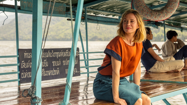 Sarah (Nadeshda Brennicke) fährt mit einer Personenfähre auf dem Kwai zu einem Date.