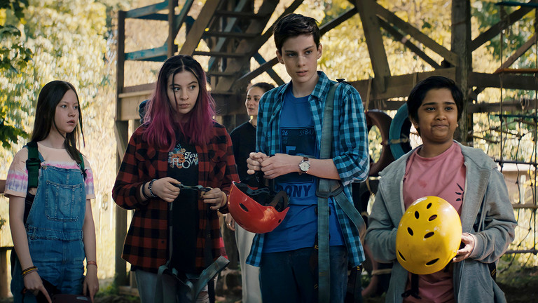 Dreharbeiten zur Science-Fiction-Mystery Serie "Silverpoint". Im Feriencamp "Silverpoint" sind Meg (Katy Byrne), Kaz (Maiya Silveston), Louis (Oliver Cunliffe) und Glen (Krish Misra, v. l.n.r.) in eine Gruppe eingeteilt worden.