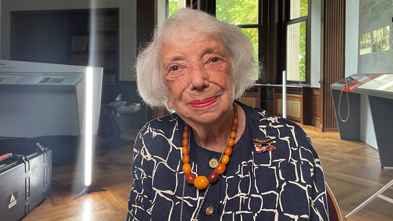 Holocaust-Überlebende Margot Friedländer, Jahrgang 1921, in der Gedenk- und Bildungsstätte Haus der Wannsee-Konferenz in Berlin vor ihrem Interview für die Dokumentation von Jörg Müllner.