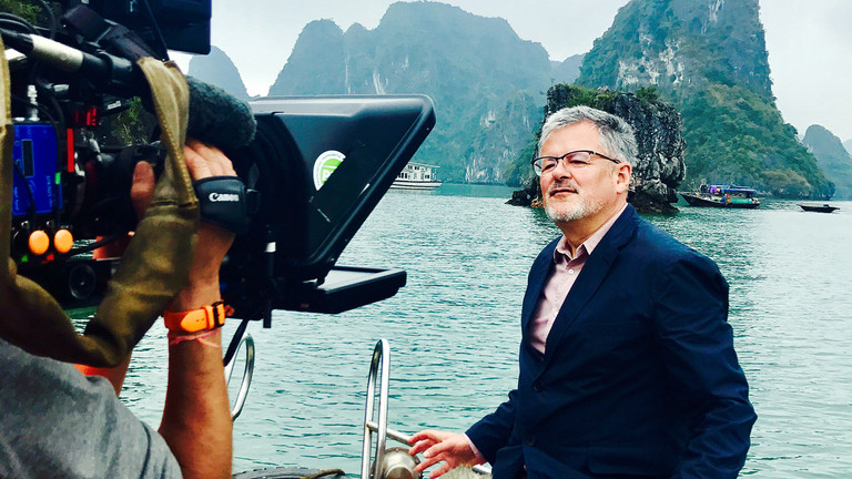 Cambridge-Historiker Sir Christopher Clark besucht für das ZDF Stätten, die den Titel "UNESCO-Welterbe" tragen. In Vietnam haben die Dreharbeiten zu der neuen Reihe mit dem Arbeitstitel "Die Welten-Saga" begonnen, dem neuen "Terra X"-Dokumentationsprojekt über das UNESCO-Welterbe. Autor und Regisseur ist Gero von Boehm.