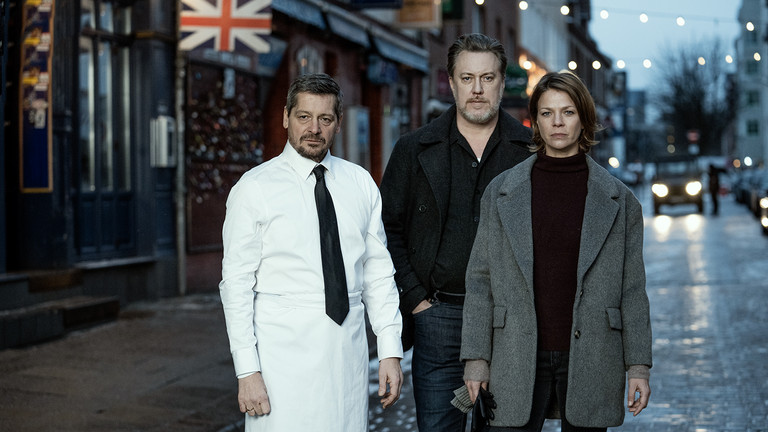 Szene aus der ZDF/ARTE-Produktion "Alles auf Rot" mit Fritz Karl, Nicholas Ofczarek und Jessica Schwarz.