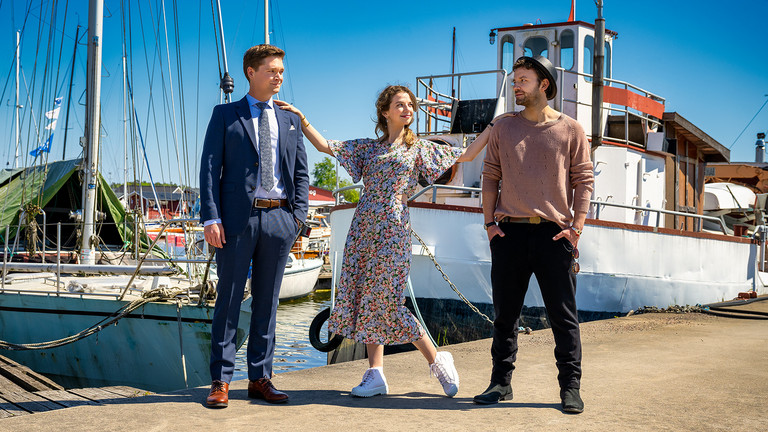 "Inga Lindström: Die schönste Hochzeit der Welt": Sören (Philipp Lind), Lena (Magdalena Höfner), Charlie (Jonas Minthe)
