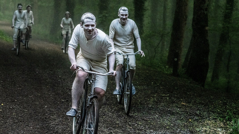 Ike (Jakub Sprenger, 2.v.r.) und Sam (Marek Wroblewski, r.) fahren mit den gestohlenen Fahrrädern der englischen Jungen durch den Wald und spüren die neue Freiheit.