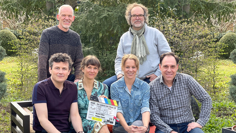 Hinten von links: Regie Martin Enlen, Kamera Philipp Timme, vorne von links: Nils (Manuel Rubey), Tine (Kathrin von Steinburg), Annie (Bernadette Heerwagen), Ralf (Thomas Loibl)