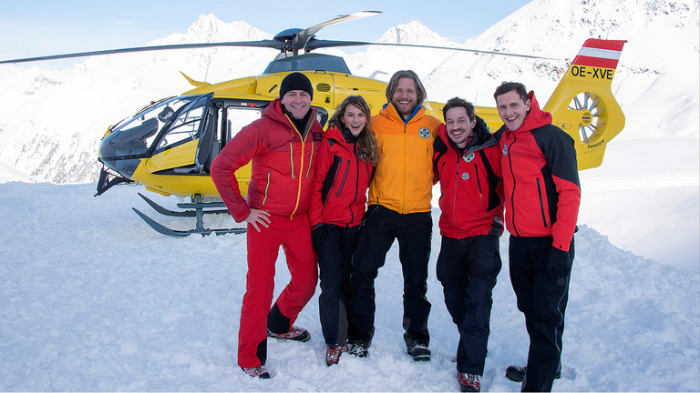 Robert Lohr (Michael Dörfler), Luise Bähr (Katharina Strasser), Sebastian Ströbel (Markus Kofler), Markus Brandl (Tobias Herbrechter) und Michael Pascher (Rudi) - Drehstart zur neuen Staffel (10) der Bergretter in Tirol.