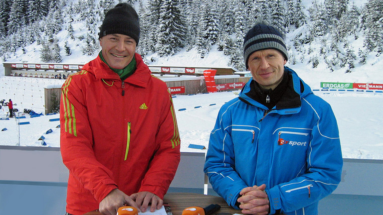 ZDF-Biathlon-Experte Sven Fischer (l.) und ZDF-Biathlon-Moderator Alexander Ruda