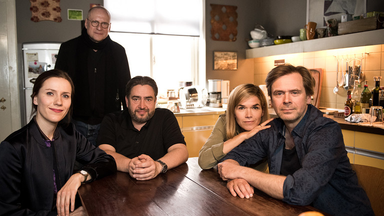 Regisseur Matti Geschonneck (hinten) mit vier Hauptdarstellern: Bettina Lamprecht, Alexander Hörbe, Anke Engelke und Matthias Matschke v.l.