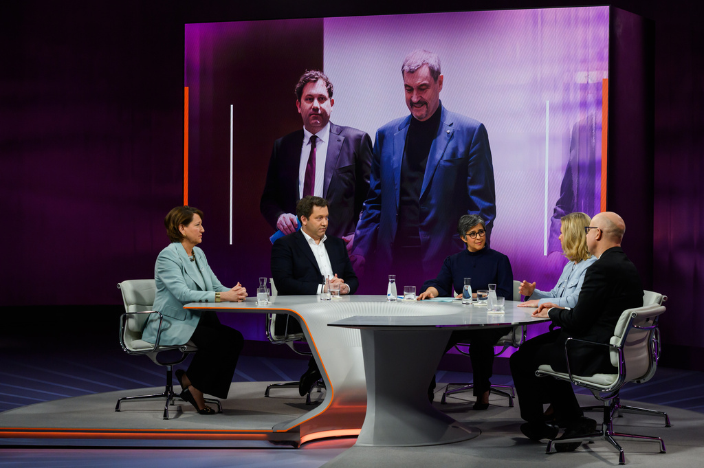 Zu Gast bei Maybrit Illner sind Kanzleramtsminister Thorsten Frei (CDU), Grünen-Fraktionschefin Katharina Dröge, DGB-Vorsitzende Yasmin Fahimi, der Ökonom Michael Hüther, Bäckermeister Matthias Grenzer und der Journalist Robin Alexander.